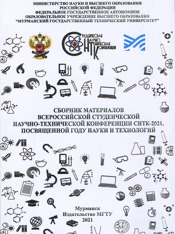 09.06.22Сборник материалов Всероссийской студенческой научно-технической конференции СНТК – 2021, посвященной году науки и технологий, (Мурманск, 14-15 апреля 2021 г.) / Министерство науки и высшего образования Российской Федерации, Федеральное государственное автономное образовательное учреждение высшего образования "Мурманский государственный технический университет". – Науч. изд. – Мурманск : Издательство МГТУ, 2021. – 287 с. : ил. – ISBN 978-5-907368-41-5 : 278-73. – Текст : непосредственное.