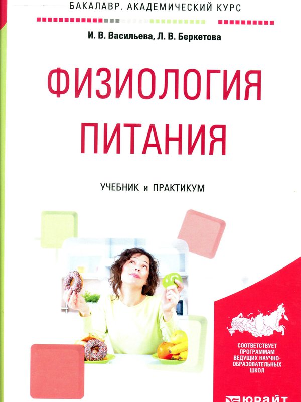 09.11.20Васильева, И. В. Физиология питания : учебник и практикум для академического бакалавриата : учебник и практикум для студентов высших учебных заведений, обучающихся по естественнонаучным направлениям / И. В. Васильева, Л. В. Беркетова. – Москва : Юрайт, 2019. – 210, [2] с. : ил.