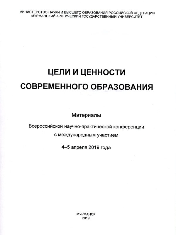 Цели и ценности современного образования : материалы Всероссийской научно-практической конференции с международным участием, 4-5 апреля 2019 года / Министерство науки и высшего образования Российской Федерации, Мурманский арктический государственный университет ; ответственный редактор В. Э. Черник . – Мурманск : МАГУ, 2019. – 223 с. : ил.