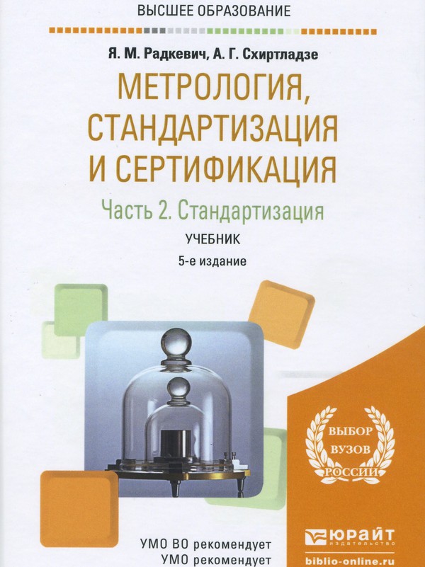 14.04.22Радкевич, Я. М. Метрология, стандартизация и сертификация. Ч. 2. Стандартизация : учебник для вузов : для студентов, обучающихся по направлениям подготовки: "Технология, оборудование и автоматизация машиностроительного производства", "Конструкторско-технологическое обеспечение машиностроительных производств", "Автоматизированные технологии и производства" / Я. М. Радкевич, А. Г. Схиртладзе. – 5-е изд., перераб. и доп. – Москва : Юрайт, 2021. – 479, [2] с. : ил. – (Высшее образование). – Библиография: с. 478-481. – ISBN 978-5-534-01929-2 (ч. 2). – ISBN 978-5-534-01916-2 : 1374-70. – Текст : непосредственное.