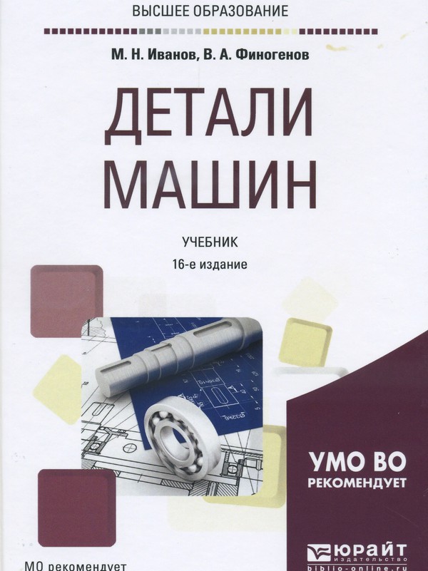 14.04.22Иванов, М. Н. Детали машин : учебник для вузов : для студентов высших учебных заведений, обучающихся по инженерно-техническим направлениям / М. Н. Иванов, В. А. Финогенов. – 16-е изд., испр. и доп. – Москва : Юрайт, 2020. – 408 с. : ил. – (Высшее образование). – Библиография: с. 402-403. – ISBN 978-5-534-07341-6 : 1190-54. – Текст : непосредственное.