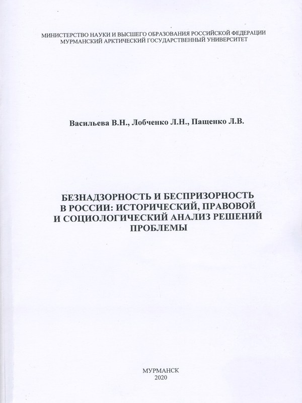 23.12.21Васильева, В. Н. Безнадзорность и беспризорность в России: исторический, правовой и социологический анализ решений проблемы : учебное пособие / В. Н. Васильева, Л. Н. Лобченко, Л. В. Пащенко; Министерство науки и высшего образования Российской Федерации, Мурманский арктический государственный университет. – Мурманск : МАГУ, 2020. – 187 с. : табл. – Библиогр.: с. 149-151. – ISBN 978-5-4222-0432-8 : 140-00. – Текст : непосредственное.