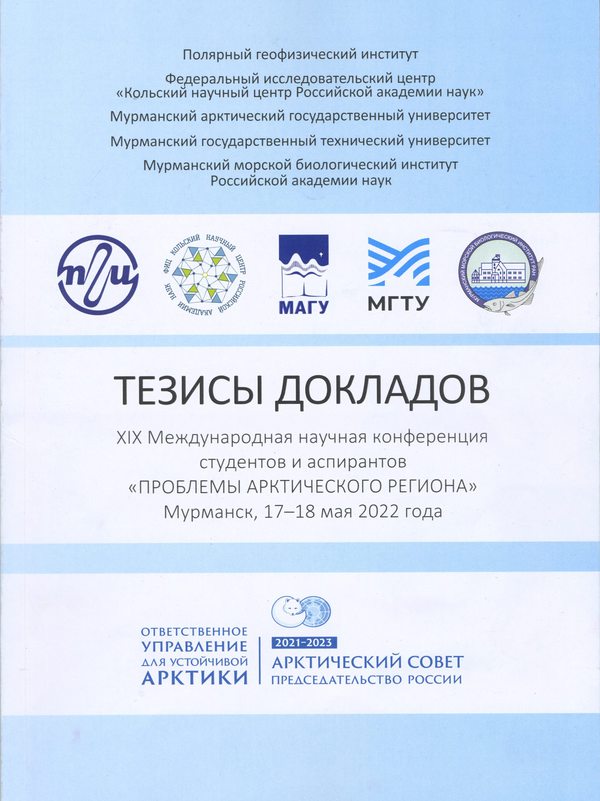Проблемы арктического региона : 19-я международная научная конференция студентов и аспирантов, г. Мурманск, 17-18 мая 2022 года : тезисы докладов